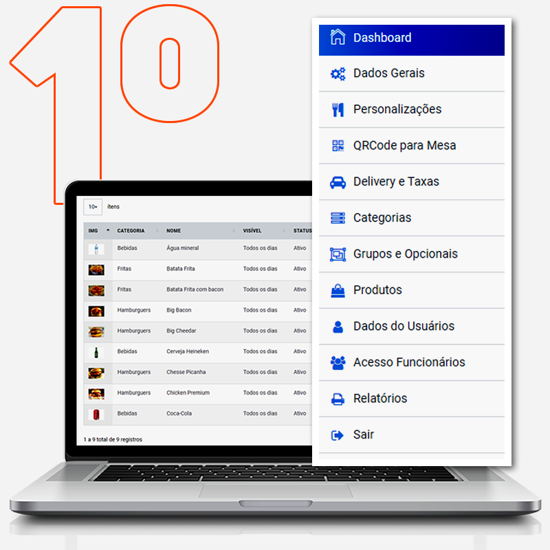 Crie produtos, descrições, insira fotos e muito mais. Personalize seu cardápio e explore ao máximo as funcionalidades e recursos, oferecendo opções de delivery ou retirada no local ao seu cliente.